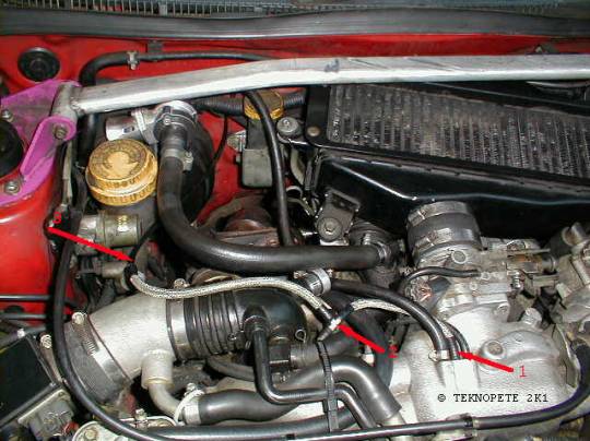 1/ Remove existing hose from manifold and attach a short length of similar bore hose to where you removed the old one from. (Shortest braided hose in picture)